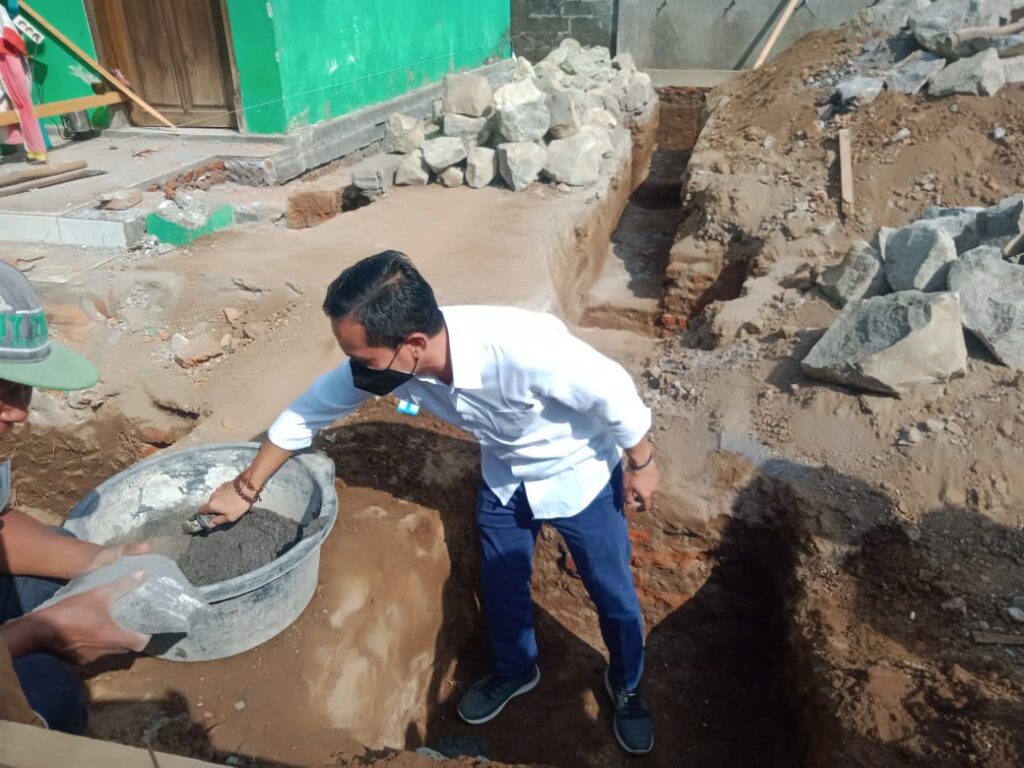 JEMBER, SSCMEDIA – DPRD Provinsi Jatim Deny Prasetya resmi lakukan peletakan batu pertama, pembangunan gedung kelas MI Riyadlut Tholibin, Jl. Dahlia Tegalbaru Desa Paleran. (7/21)