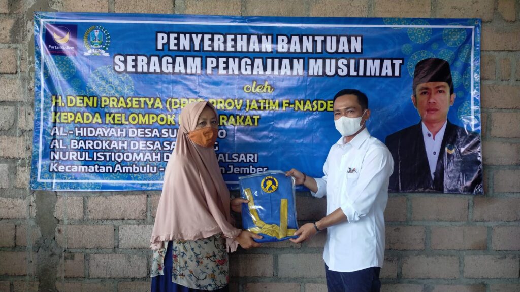 JEMBER, SSCMEDIA – DPRD Provinsi Jatim Deny Prasetya, salurkan 800 seragam untuk muslimat. (7/21)