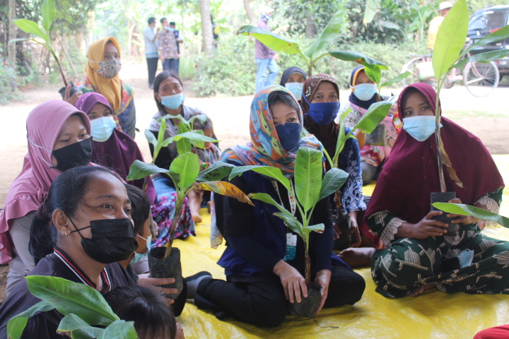“Sangat kaya akan manfaat. Sekali tanam, pohon pisang akan terus hidup dan bertunas, dan hasil panennya dapat diolah menjadi produk UMKM. Misalnya kripik pisang, nugget pisang, bolu pisang dan lain semacamnya,” sebutnya.